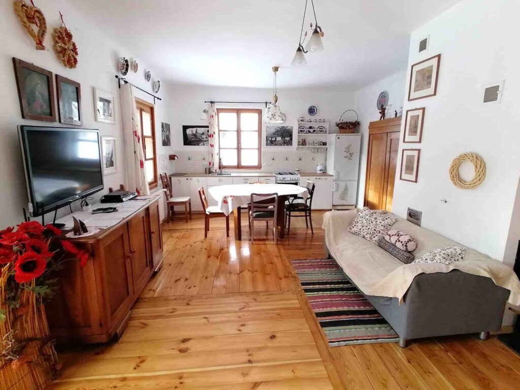 Lniana Izba to komfortowy samodzielny domek 8-osobowy. Domek posiada 2 pokoje 4-osobowe, łazienkę oraz aneks kuchenny. Jest tu również duży taras, na którym goście mogą...
