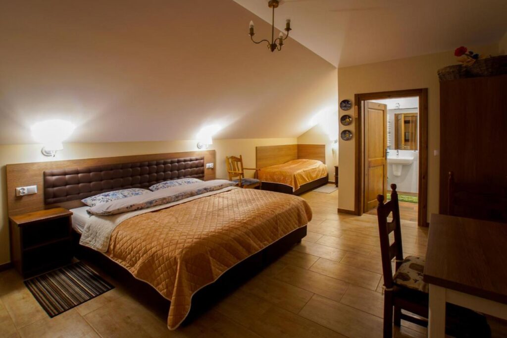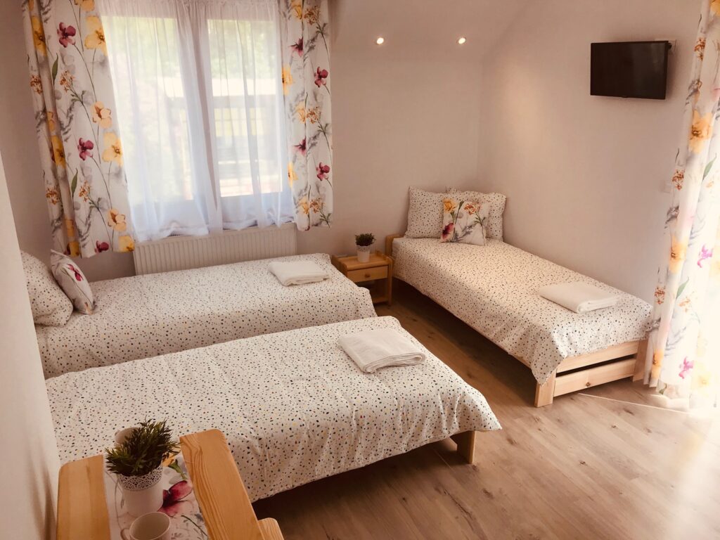 Oferujemy 5 pokoi z łazienkami, telewizorami i bezpłatnym Wi-Fi w tym 2- trzyosobowe z balkonami i 3- dwuosobowe. Do dyspozycji naszych gości jest także duża...